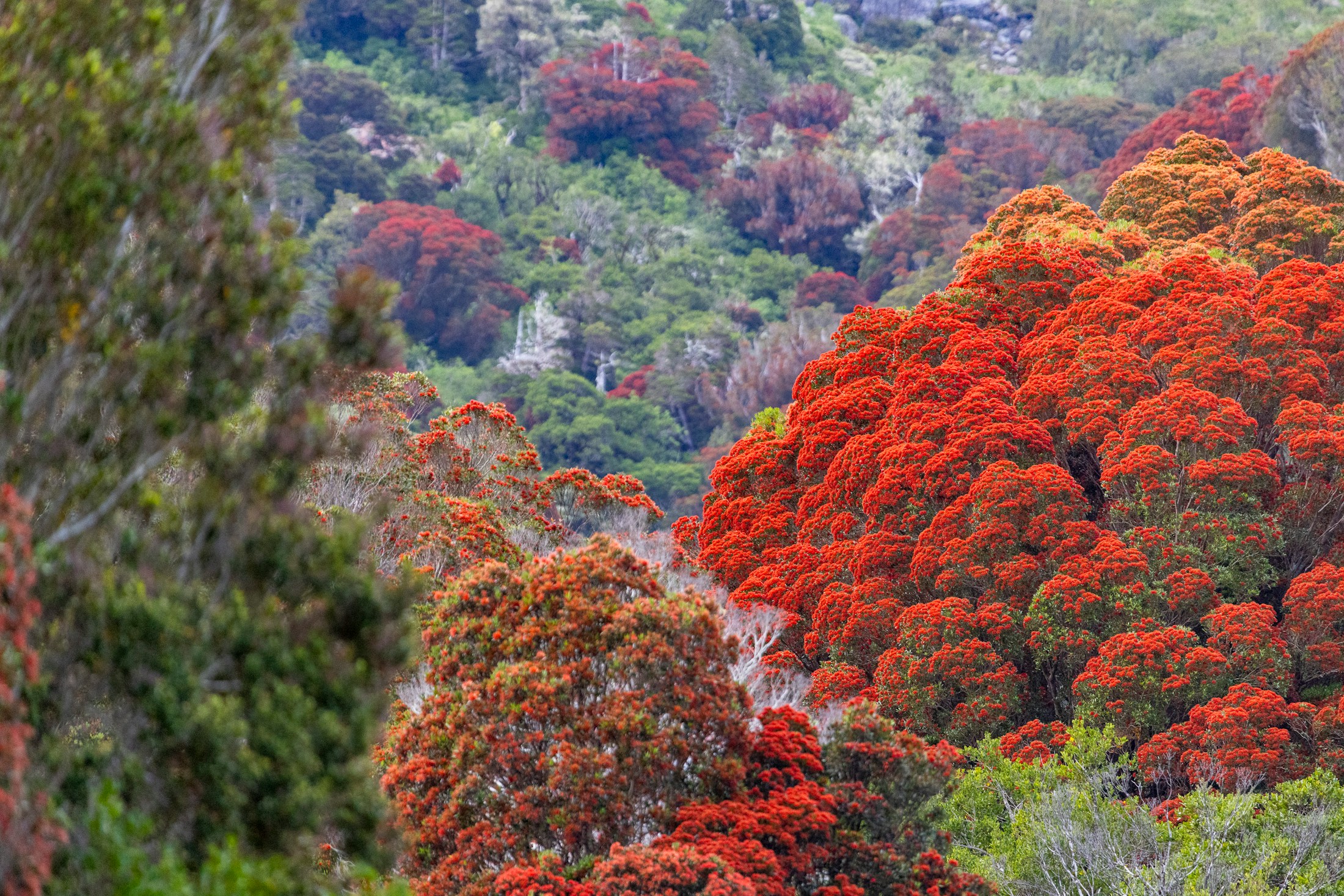 Rātā bloom : NEXT has supported projects that have seen huge biodiversity gains, such as Predator Free South Westland which displayed an impressive rātā bloom last summer.